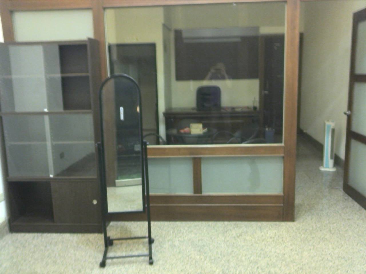 書櫃、鏡子、電扇、玻璃展示櫃。